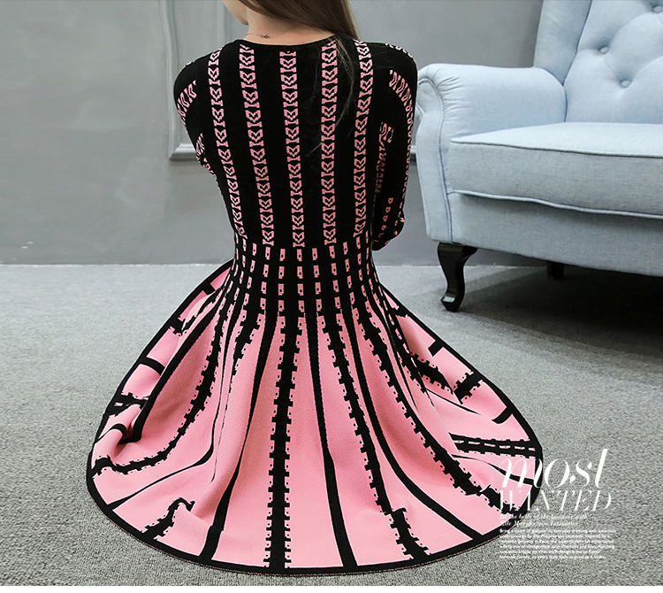 Тёплое платье с длинным рукавом, приталенное, юбка клёш.