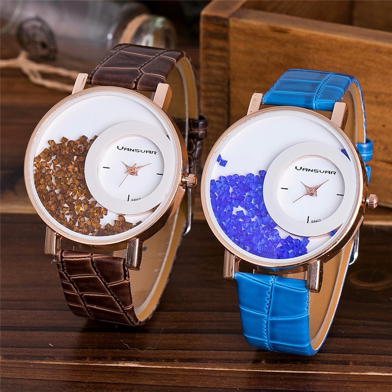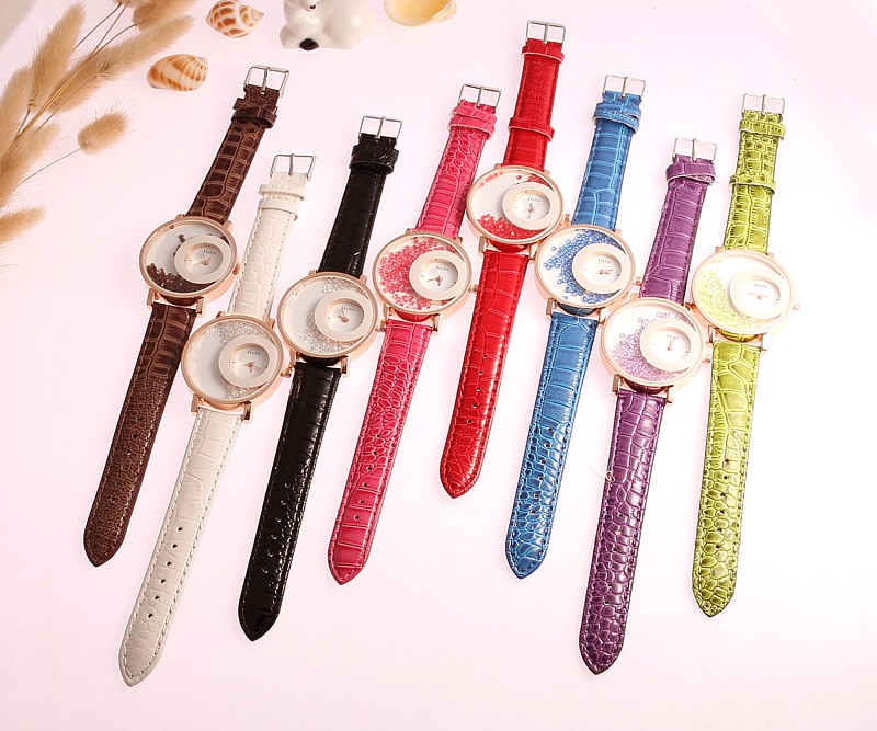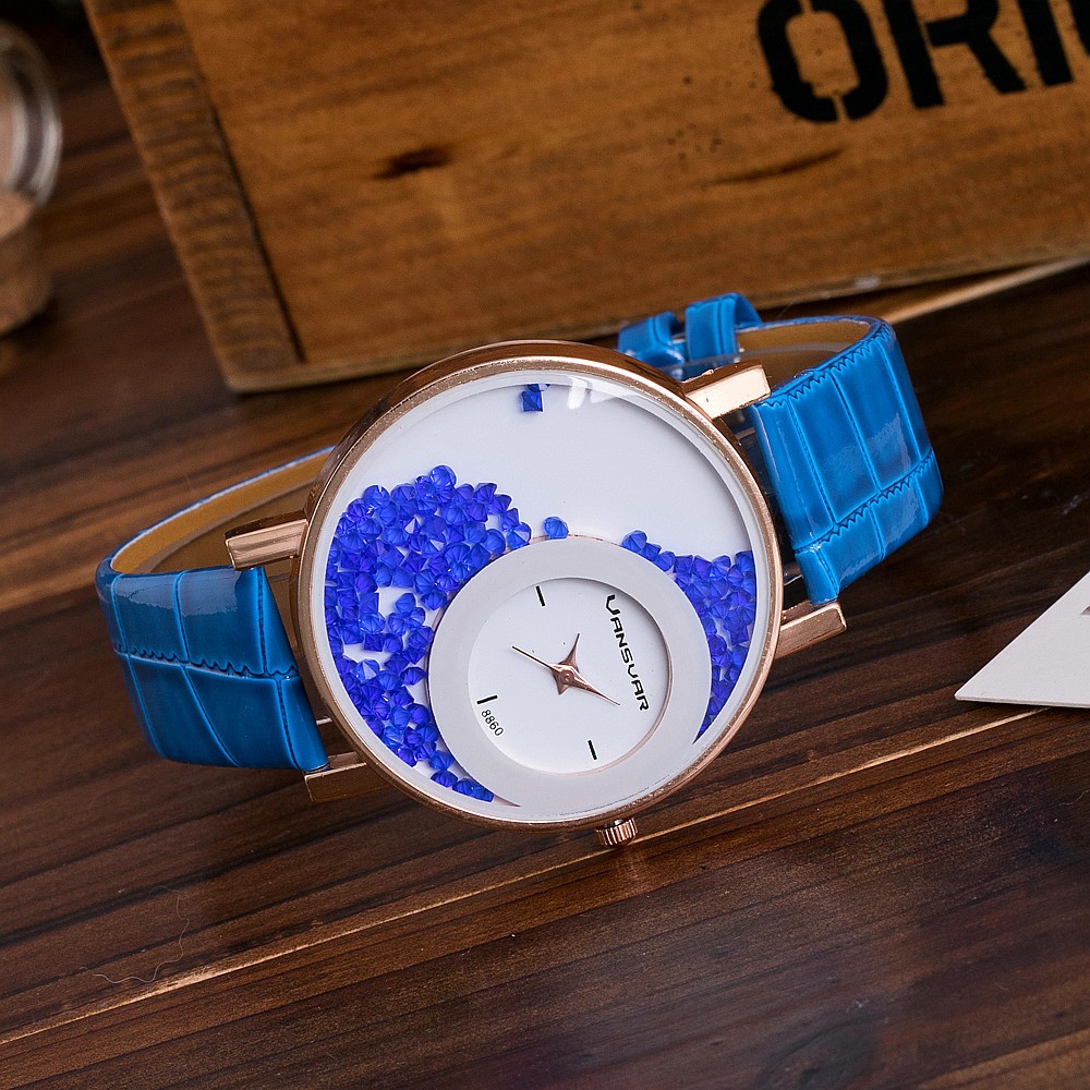 Таких часов Вы не увидите ни у кого! Циферблат с «танцующими кристаллами», кошеный ремешок с интересной фактурой. Все элементы внимательно выбраны и замечательно дополняют друг друга.