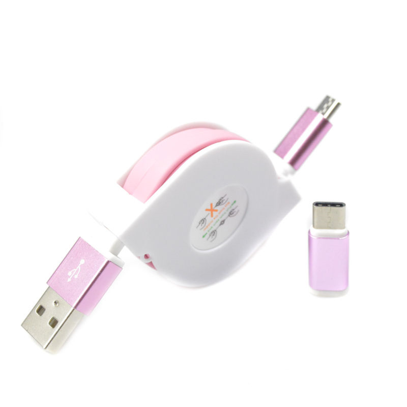 Кабель-зарядка "Рулетка". Длина 1 метр 1.8A кабель Micro USB + адаптер Micro USB Type-c