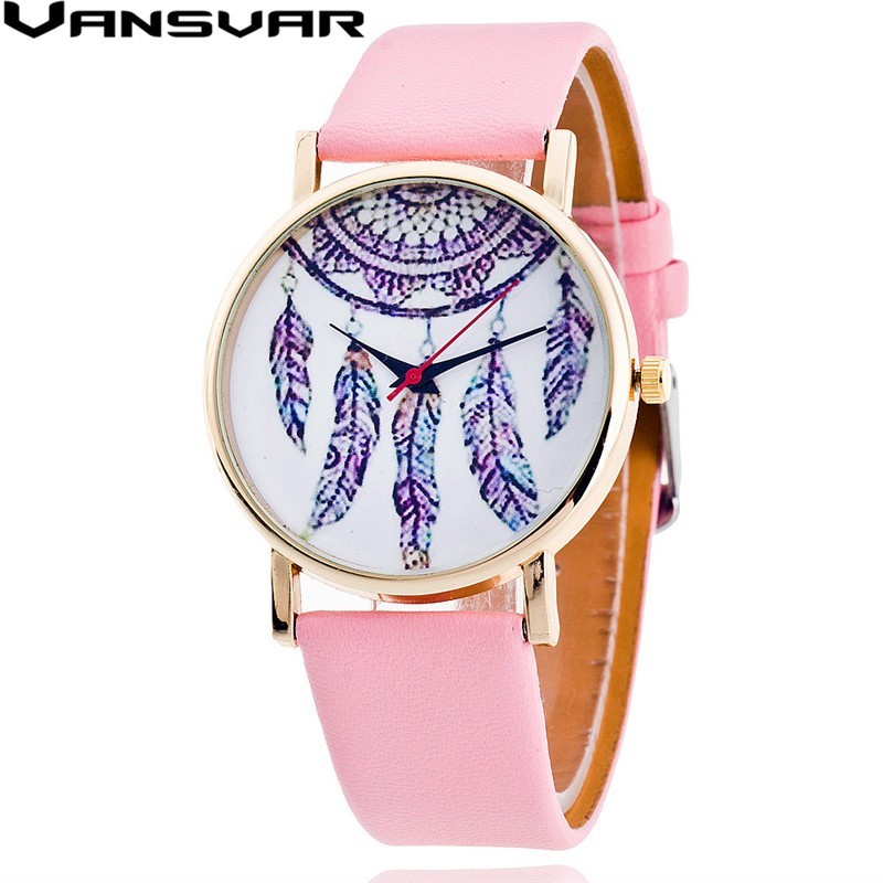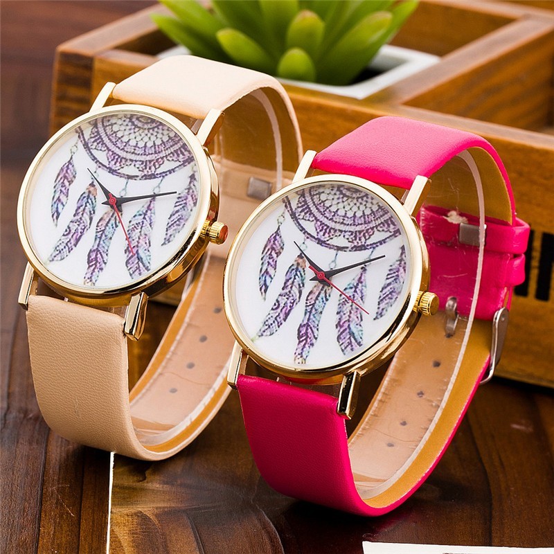 Часы разных расцветок. Часовой механизм кварцевый. На циферблате изображен «Ловец снов». Кожаный ремешок.