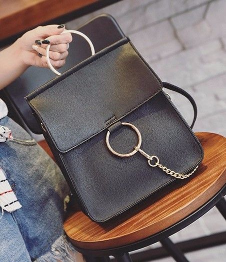Женский рюкзак с ручкой-кольцом из искусственной кожи. Застегивается на магнитную кнопку. Имеет внутренние карманы, регулируемые плечевые ремни. Может трансформироваться в сумку на плечо. Размеры: длина - 21 см, ширина- 8 см, высота - 25 см. Производство - Китай.