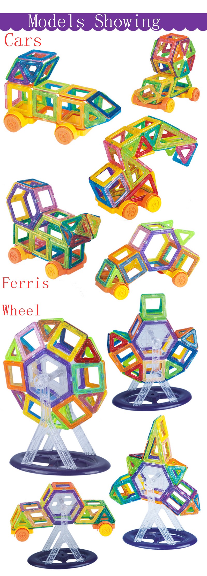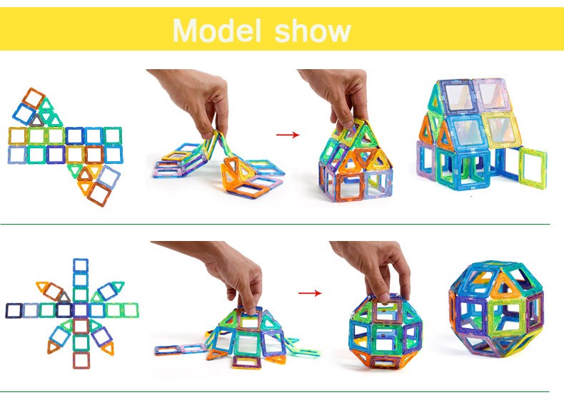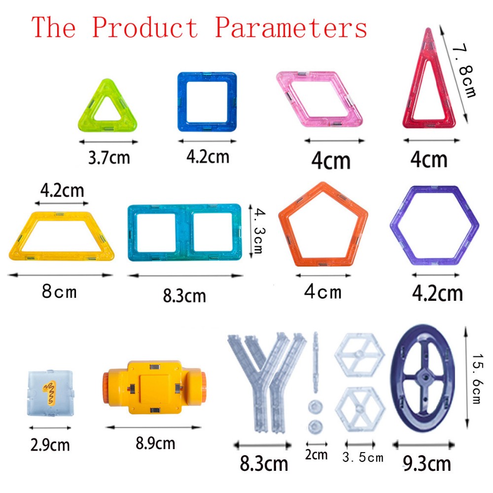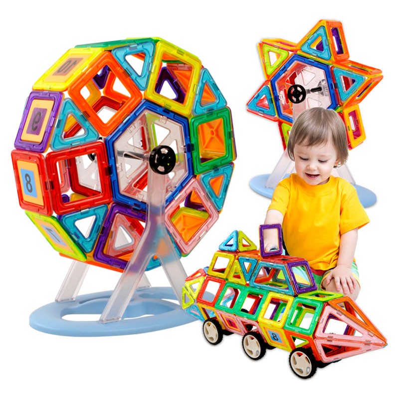 Магнитный конструктор деталей разный форм и цветов. Количество деталей позволяет собирать сложные постройки (домики, небольшие замки, волшебный шар и т.д.). В игровой форме ребенок изучает различные цвета, что очень важно для восприятия окружающего мира. Мальчишки могут создать ракету или гараж, девчонкам будет интересно попробовать себя в качестве творца домика для своей любимой куклы или необычной дизайнерской сумочки. Каждый может почувствовать себя модельером и придумать необычный головной убор, будь то смешная шапка или пионерская пилотка. Набор идеально для этого подойдет - все детали разноцветные и их количества хватит для того, чтобы проявить фантазию ребенка!