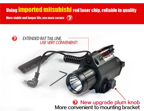 Красный лазер 650 nm и 3 Вт светодиодный фонарь с непрерывным горением 3 часа.