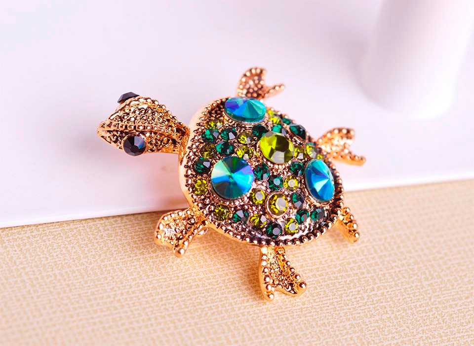 Ни один стиляга не будет выглядеть современно без искусно подобранной бижутерии, которая гармонично завершит его образ! Бижутерия – это современная недорогая альтернатива украшениям из золота и прочих драгоценных металлов. Брошь "Черепашка" - это то, что добавляет шарма в стиль!