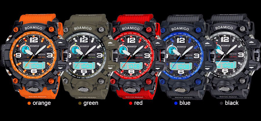 Водонепроницаемые спортивные аналоговые часы с двойным дисплеем.