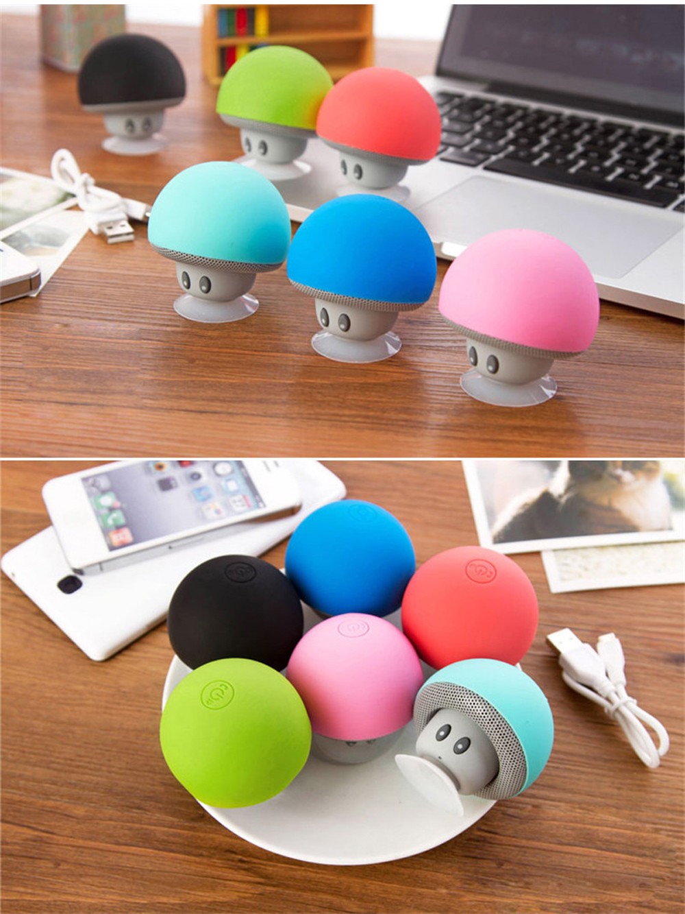 Портативный беспроводной динамик-подставка на присоске "Гриб".