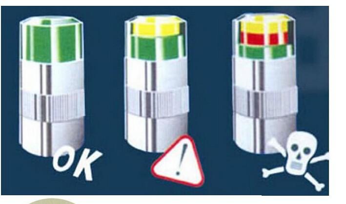Тестер давления в шинах Air Alert – набор колпачков для нипелей автомобильных шин. Оригинальный, простой в использовании прибор, который вовремя уведомит владельца о низком давлении в шинах. Это один из самых удобных автоаксессуаров для постоянного мониторинга давления шин. Цвет показывает давление в шине: зеленый – давление в норме; желтый – потеря давления 10%; красный предупреждает, что давление снижено на 25% (критическое падение давления). Для автомобилей выпускаются колпачки с тремя нормальными давлениями: 2.0, 2.2, 2.4 бар. Для мотоциклов – нормальное давление 2.8 бар. Его применение поможет избежать проблем на дороге, связанных с пониженным давлением в шинах (ускоренный износ покрышек, повешенный расход топлива, плохая управляемость автомобиля, увеличенный тормозной путь), которые могут привести к нежелательным последствиям.