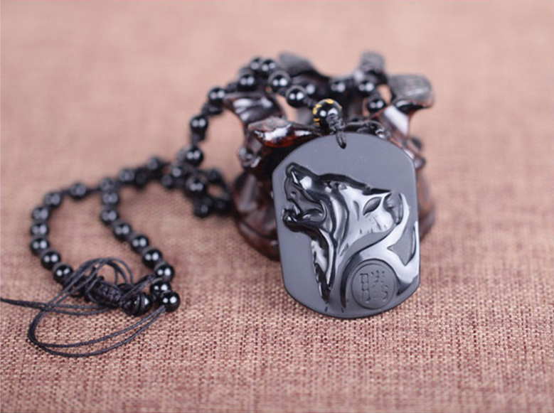 Кулон-амулет из натурального черного обсидиана (магматической горной породы).