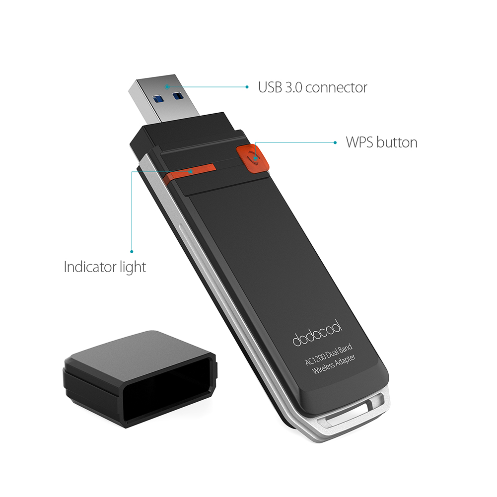 Беспроводной WiFi адаптер (догл) двухдиапазонный Dodocool AC1200 Dual Band USB 3.0 2.4 ГГц 300 Мбит или 5 ГГц 867 Мбит WPS шифрования.