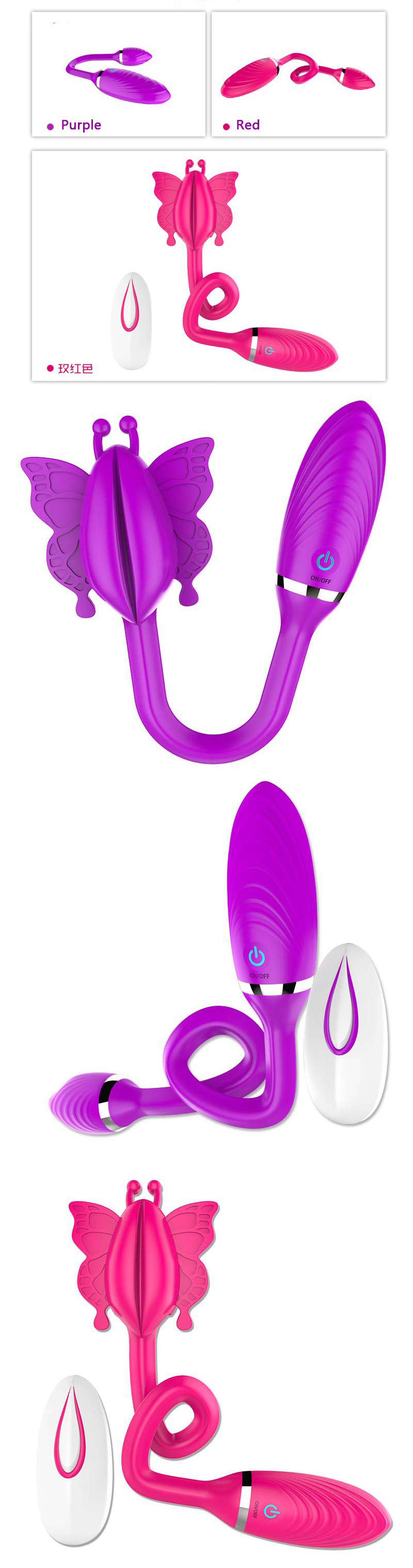 Анально-вагинальный вибромассажер "Бабочка" с двумя вибропулями соединенными между собой гибким стержнем - изделие, предназначенное для одновременного анально-вагинального секса. Заряжается до полной зарядки всего 60 минут,а время беспрерывной работы 90 мин. Диаметр крупного стимулятора с пупырышками - 3,2 см. Диаметр малого стимулятора обтекаемой формы - 2,6 см.