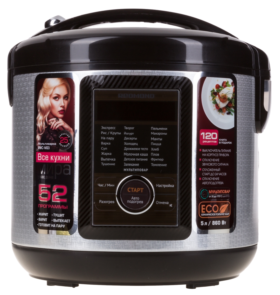 В этой мультиварке 25 программ, а значит, есть все необходимое для повседневной готовки плюс еще несколько режимов для блюд национальной кухни (манты, пельмени, пицца).