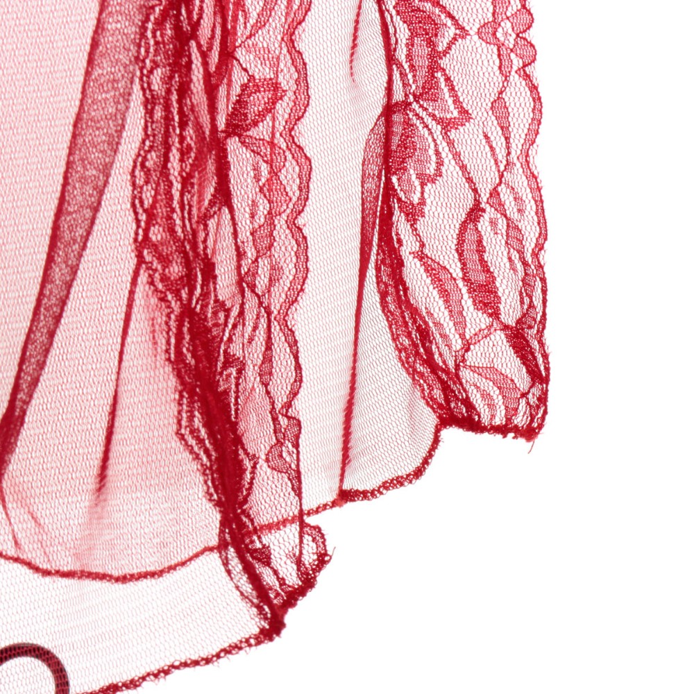Выполнен из мягкого кружева и полиэстера.