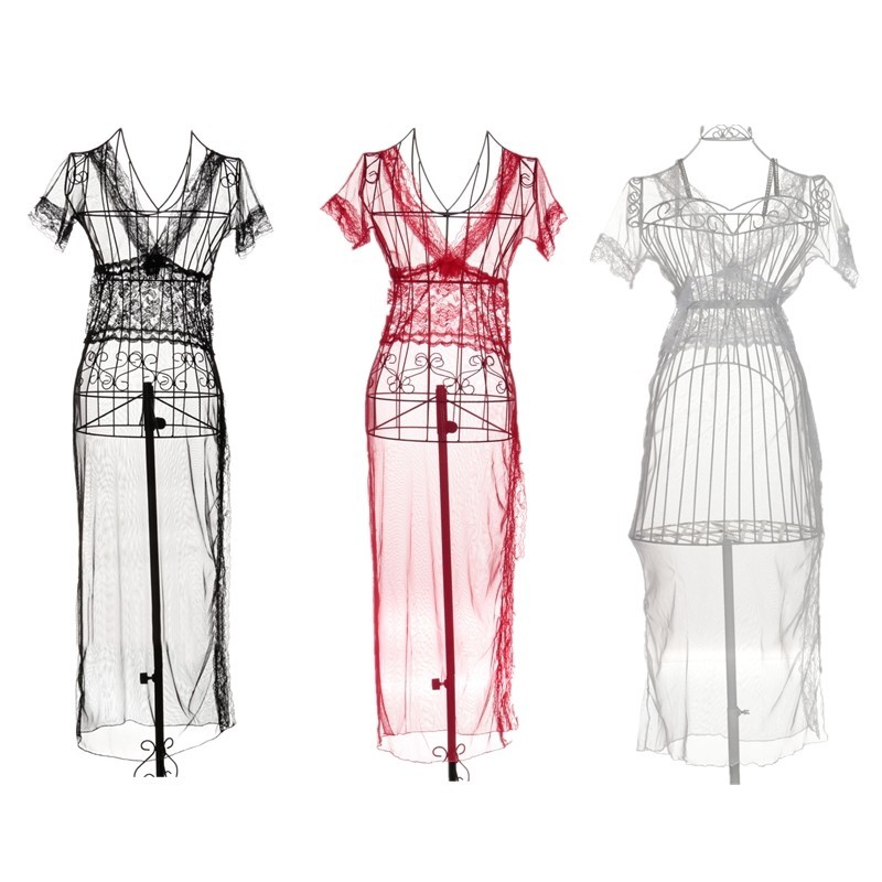 Шикарный длинный кружевной пеньюар в черном, красном и белом цвете! Смотрится очень эффектно!