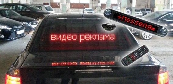 Установив экран на заднем стекле автомобиля, Вы сможете выразить благодарность - «Cпасибо, что уступили дорогу!» или поздравить с праздником - «С Новым Годом!!!», а в дорожной «пробке» - включить строку с юмором – «Кто рано встает - тот далеко от работы живет» или с рекламной информацией: «Требуются водители категории «Д»...