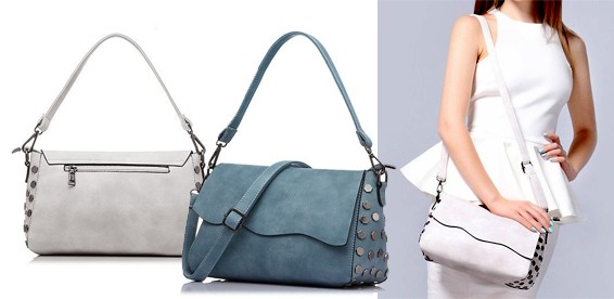 Женская сумка-багет из искусственной кожи с металлическими украшениями. Застегивается на молнию и крышку-клапан на магните. Имеет внутренние карманы и съемный регулируемый плечевой ремень. Снаружи, на задней стороне, имеется горизонтальный карман на молнии. Размеры: длина - 28 см, ширина - 12,5 см, высота - 17 см. Производство - Китай.