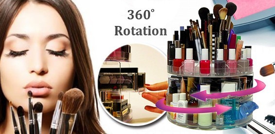 Органайзер ― стильный аксессуар, который состоит из 2-х прозрачных пластмассовых полочек, которые крутятся вокруг своей оси, тем самым дает возможность без труда найти нужный цвет лака, крем или другое косметическое средство