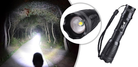 Водонепроницаемый светодиодный фонарик с регулировкой фокуса и яркостью свечения 1800люмен с АКБ и зарядным устройством в комплекте.