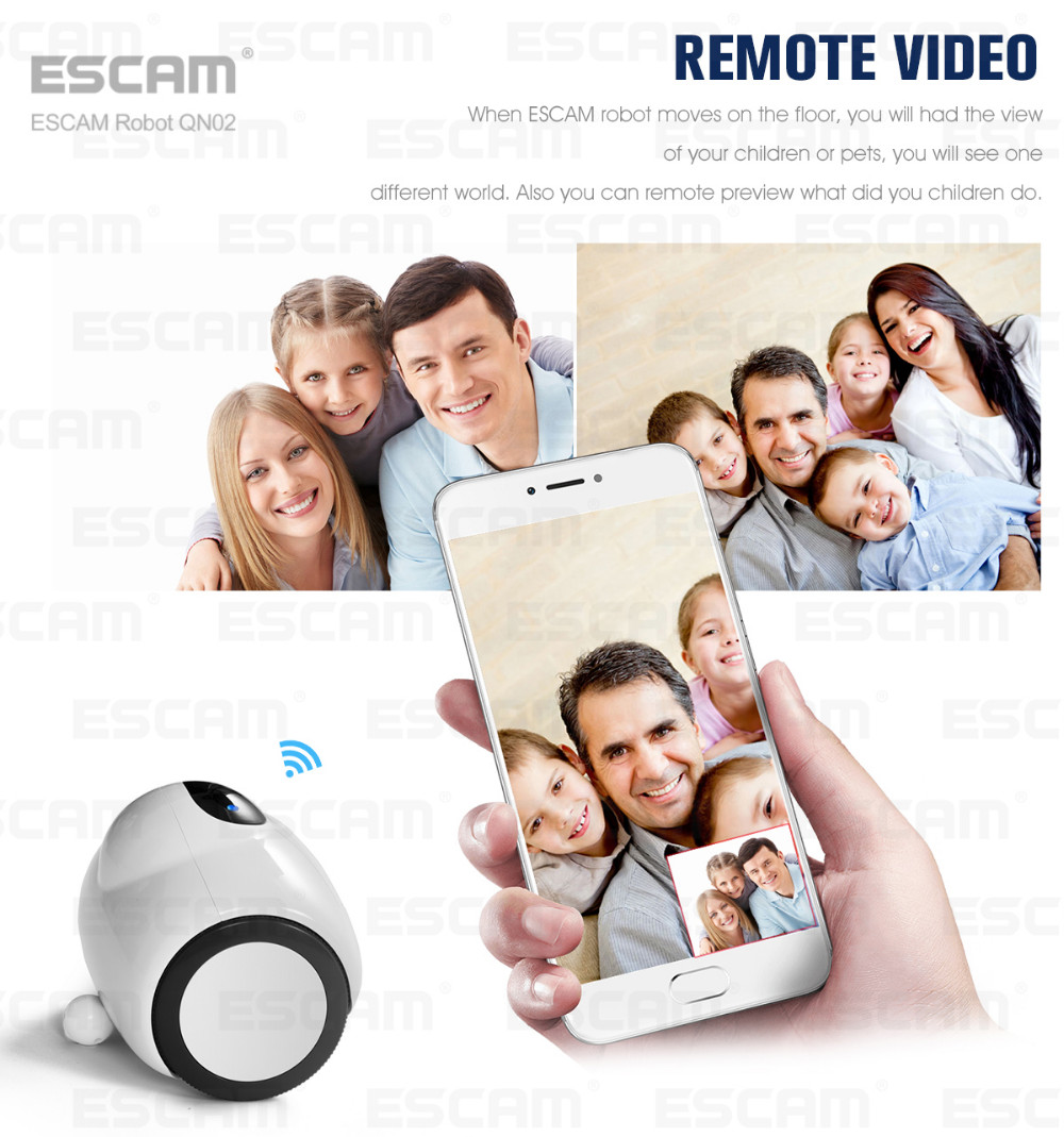 Escam интеллектуальная видеокамера робот, которая может перемещаться и автоматически заряжаться. Это - лучший партнер для домашнего охранника, а также для развлечений с Вашим ребенком или старшими.