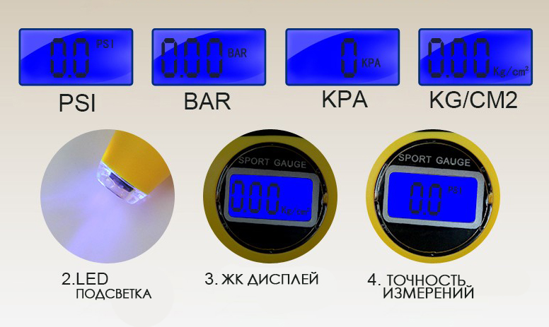 Высокоточный универсальный манометр с подсветкой в стильном спортивном дизайне.