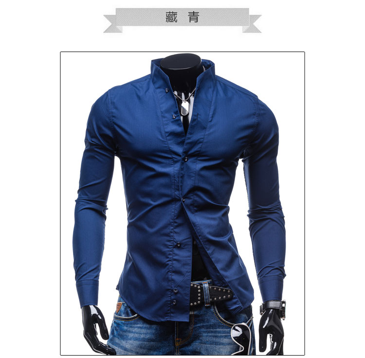 Рубашка для мужчины с воротником стойкой на работу, в офис и просто на каждый день. Модель с длинными рукавами. Застегивается на пуговицы.