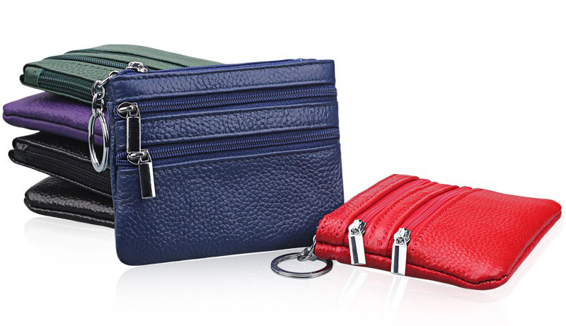Компактный и вместительный кошелёк на молнии под кожу. Выглядит очень стильно.