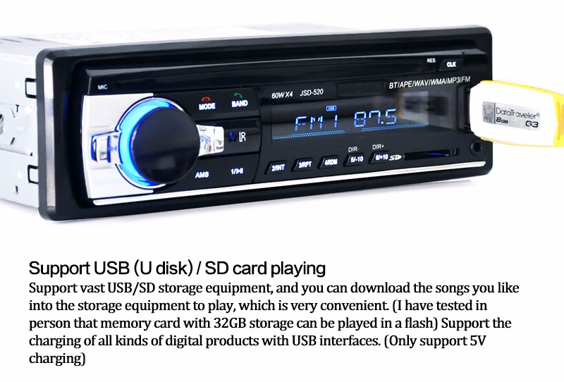 - поддержка режима: BT/APE/WAV/WMA/MP3/FM