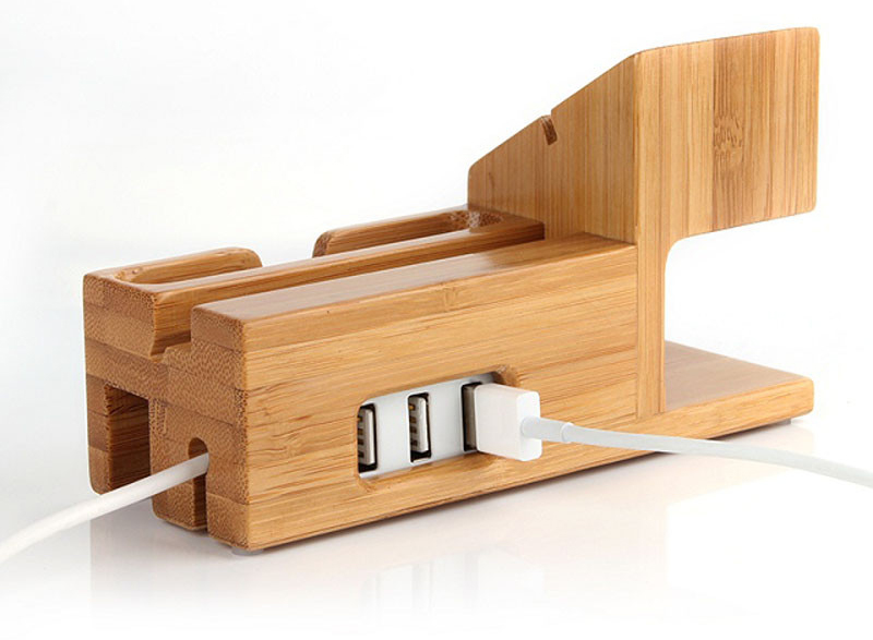 Аксессуар изготовлен из натурального бамбука. Преимуществами этого материала есть прочность, легкий вес, экологичность. Кроме того, такая док-станция прослужит длительное время, ведь бамбук не рассыхается, не расслаивается со временем и не набирает влагу, тоесть он очень износостойкий. Ко всем перечисленным преимуществам следует добавить, что аксессуар из бамбука очень стильно выглядит, поэтому станет прекрасным украшением в любом интерьере.