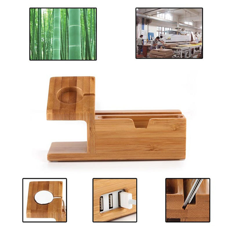 Экологически чистая бамбуковая подставка-зарядка для смартфонов и Smart часов.