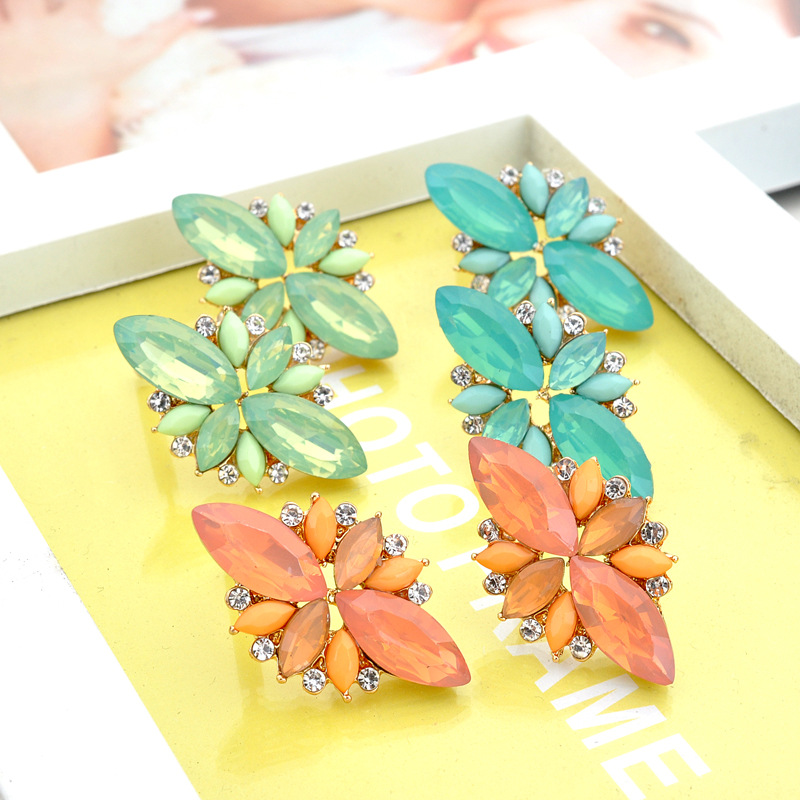 Яркие винтажные серьгиу украшены кристаллами вытянутой формы разных цветов и обрамлены маленькими стразами. Отличный вариант для роскошного вечернего образа.