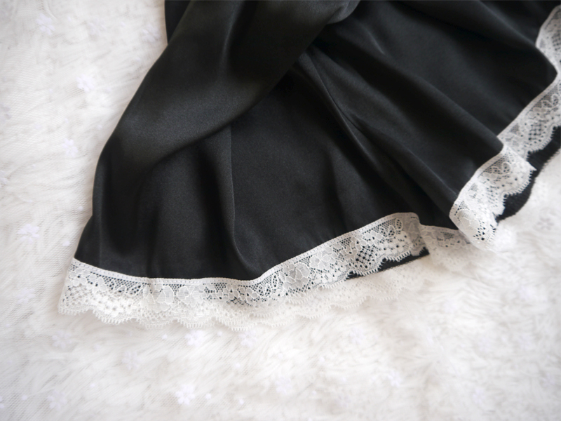 Если вы хотите купить пижаму с шортами, то эта легкая, комфортная модель в чёрном цвете, может произвести на вас приятное впечатление. Комплект состоит из маечки с регулируемыми по длине бретельками и шортиков с маленькими разрезами по бокам. Лиф маечки и края шорт декорирован изысканным вышивным кружевом.
