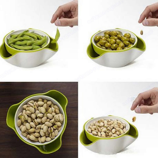 Двойная тарелка. Удобна для поедания семечек, орехов, фруктов с косточками – все ненужно скидываем в нижнюю тарелку в процессе еды.
