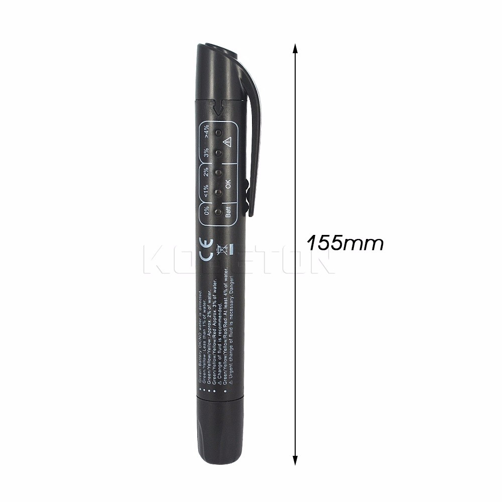 Прибор может быть использован в качестве цифрового тестера тормозной жидкости, выполнен в виде ручки, им удобно работать в ограниченном доступе. Подходит для тестирования жидкости DOT3, DOT4. Диагностика показывает процентное содержание воды в тормозной жидкости.