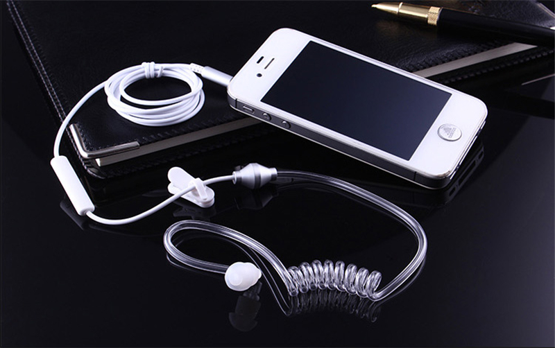 Наушник с разьемом 3.5мм для мобильных телефонов и смартфонов. Также такой наушник являеться антирадиационным, так как звук передаеться по трубке и не намагничивает ваш мозг (меньше усталость, более чёткий и чистый звук). Прозрачный провод одноухго наушника можно прятать под рубаху либо носить как обычную гарнитуру.