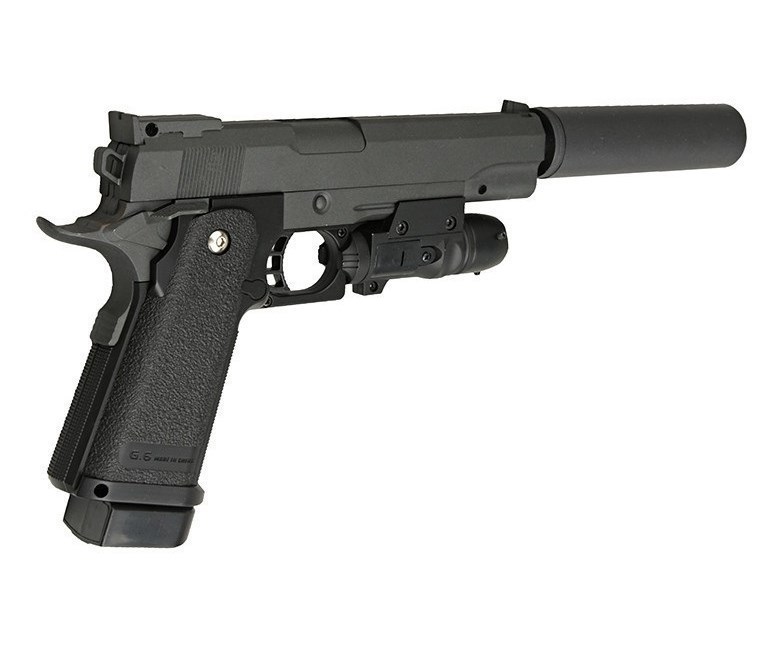 Характеристики модели пистолета G.6A Colt 1911 PD с глушителем и ЛЦУ (Galaxy):