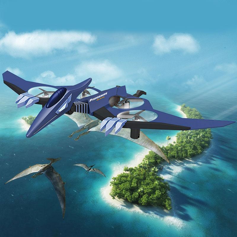 Игрушечные радиоуправляемые птерозавры, оснащённые 6-осевым гироскопом, отличаются высокой стабильностью полёта. Они просты в эксплуатации и не требуют специальных навыков для управления. Гироскоп корректирует скорость оборотов винтов, препятствуя самопроизвольному вращению вертолёта, что позволяет управлять им даже ребёнку, никогда не державшему в руках пульт управления игрушечным радиоуправляемым вертолётом.