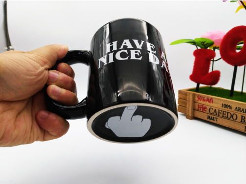 Пожелание вполне милое и приятное, конечно. Пусть у вас будет хороший день. И только красноречивый рисунок снаружи на дне чашки намекает, что это не банальная вежливость, а невероятно ядовитый ироничный посыл. Ну конечно, плохое настроение — не повод быть грубым. Пусть все за вас скажет кружка.