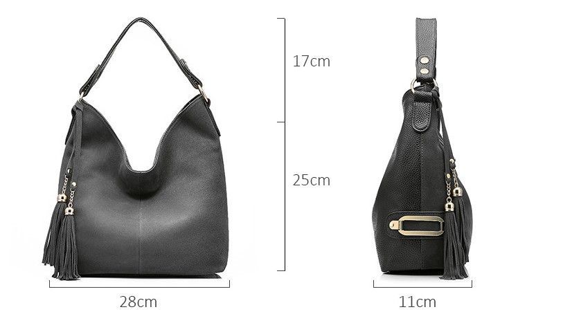 Женская сумка из натуральной замши спереди и полиуретана сзади. Застегивается на молнию. Имеет внутренние карманы и съемный регулируемый плечевой ремень. Снаружи, на задней стороне, имеется горизонтальный карман на молнии. Вмещает А4. Размеры: длина - 28 см, ширина - 11 см, высота - 25 см. Производство - Китай.