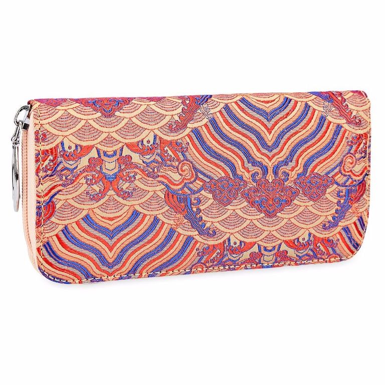 Женский кошелек из текстиля с вышивкой в этно-стиле, закрывается на молнию. Имеет отделения для карточек и денег, карман для мелочи. Размеры: 20 см*10,5см. Производство - Китай.