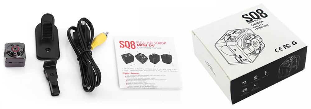 В комплекте имеются подставка и клипса с помощью которых камеру SQ8 можно прикрепить к одежде или любым другим поверхностям, что делает ее незаменимой для скрытого видеонаблюдения.