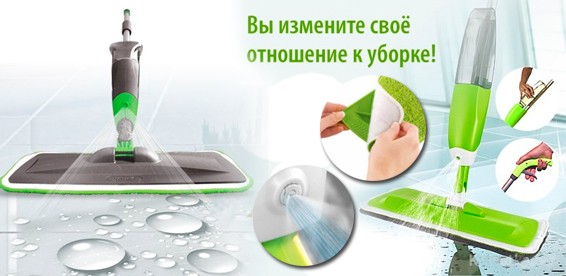 Швабра с распылителем HEALTHY SPRAY MOP или HEALTHY SPRAY MOP DELUXE на выбор + 2 накладки в подарок первым 15 покупателям.