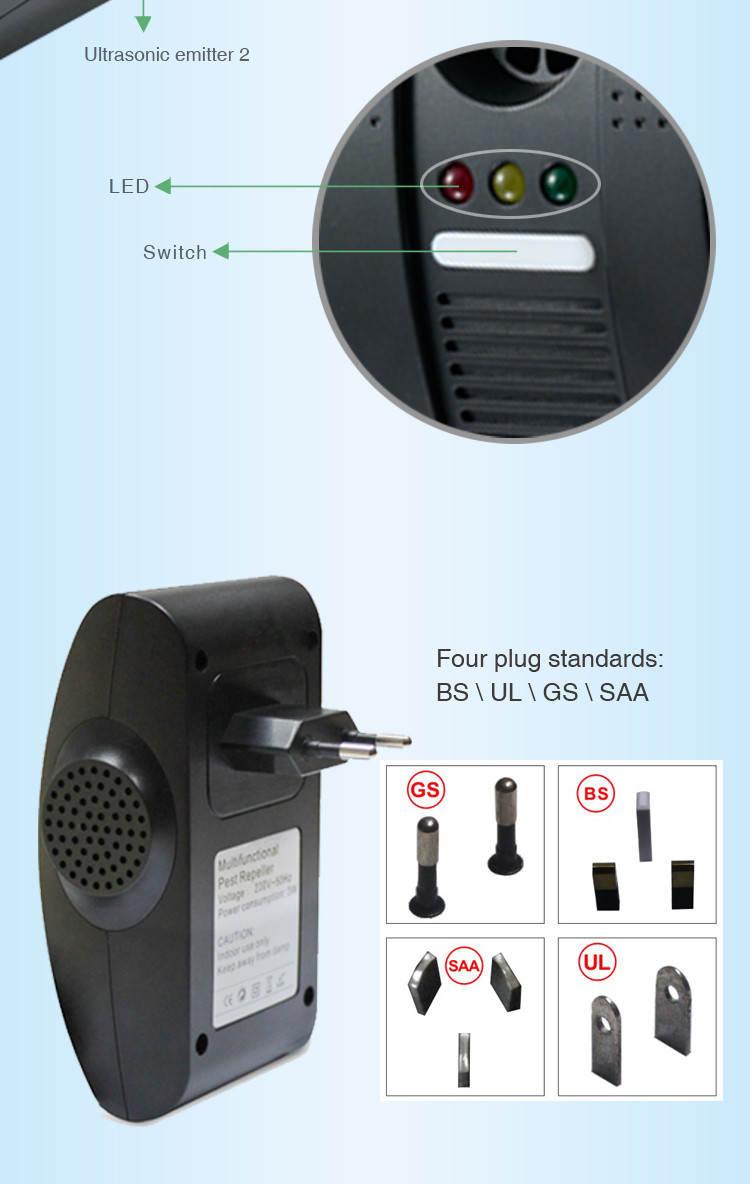 многофункциональный отпугиватель вредителей имеет четыре режима работы для вашего выбора в соответствии с различными использования окружающей среды:
