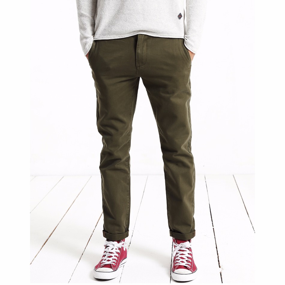 Брюки-чино покроя "слим". Планка застежки на молнию. 2 боковых и 2 задних кармана.