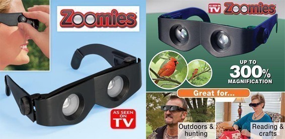 Увеличительные очки-бинокль Zoomies незаменимы для рыбаков и охотников, а так же отлично подходят для чтения, шитья, или просмотра телевизора.