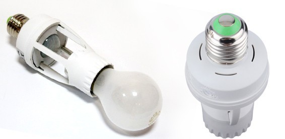 Патрон (E27) для лампы, снабженный сенсором датчиком движения. Автоматически включает лампу в патроне при появлении в зоне его действия движущихся тепловых объектов, а так же автоматически выключает его через определенное время при отсутствии движения объектов зоне контроля.