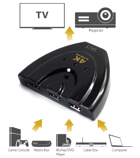 Данное устройство не только разделяет HDMI сигнал, но и усиливает его, что сделало возможным подключить кабели длиной до 15 метров. 3-х портовый делитель HDMI сигнала 4К Ultra HD также может подключаться в конце длинного HDMI кабеля для восстановления потерь HDTV сигнала. Поддерживается HDMI v1.3 c разрешением до 1080p, в том числе и формат 3D.