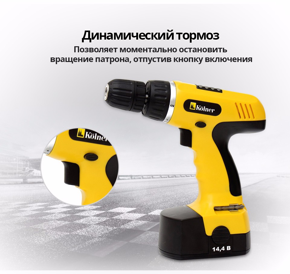 ДИНАМИЧЕСКИЙ ТОРМОЗ - позволяет, отпустив кнопку включения, моментально остановить вращение патрона