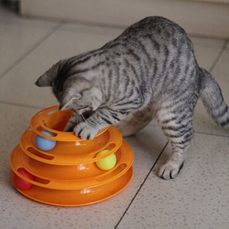 Многозадачный трек, который отлично подойдет как одной, так и нескольким кошкам для игры одновременно. «Игровая пирамидка» представляет собой устойчивую трехэтажную конструкцию из дорожек разного диаметра и очень удобной для касания лапой шириной дорожки, 3 шара – по одному на каждом уровне. Каждый шар катится по своей дорожке с разной скоростью, привлекая охотника одновременно. Игрушка имеет прочное и устойчивое основание с противоскользящими элементами, изготовлена из высококачественного пластика.