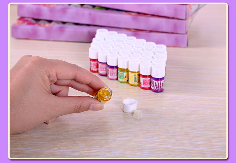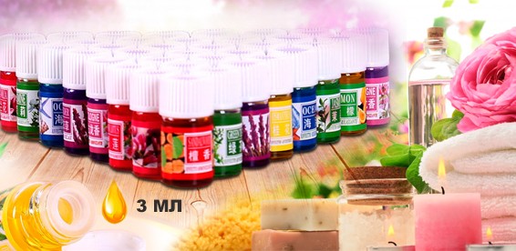 36 бутылочек по 3 мл с 12 различными запахами: Лаванда / Роза / Жасмин / Сандал / Океан / Зеленый Чай / Белый Лотос / Розмарин / Фиалка / Клубника / Магнолия / Лимон /
