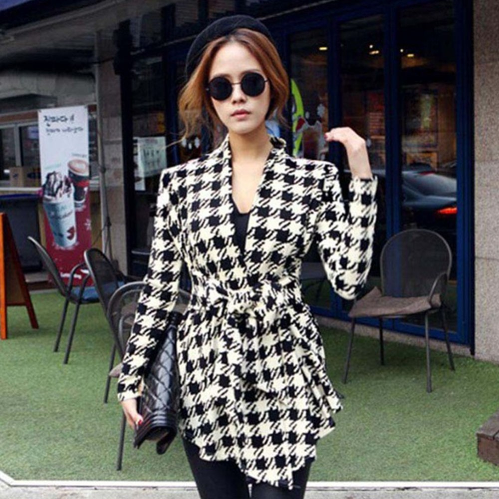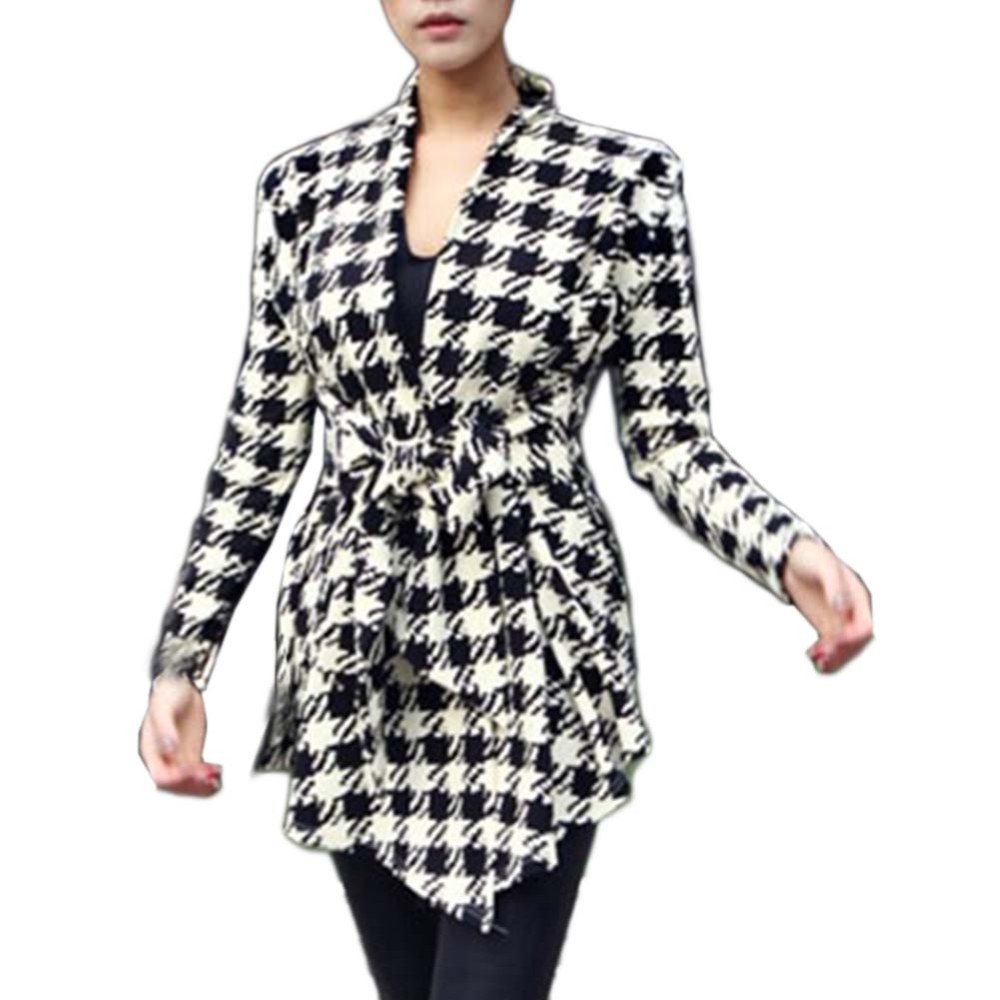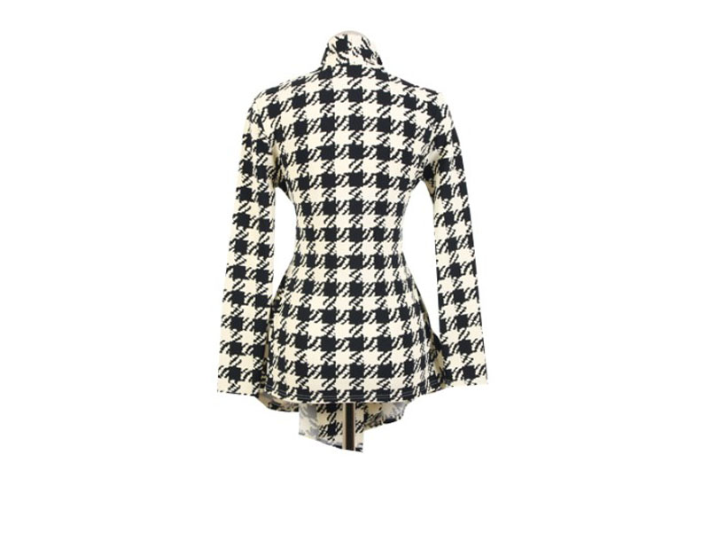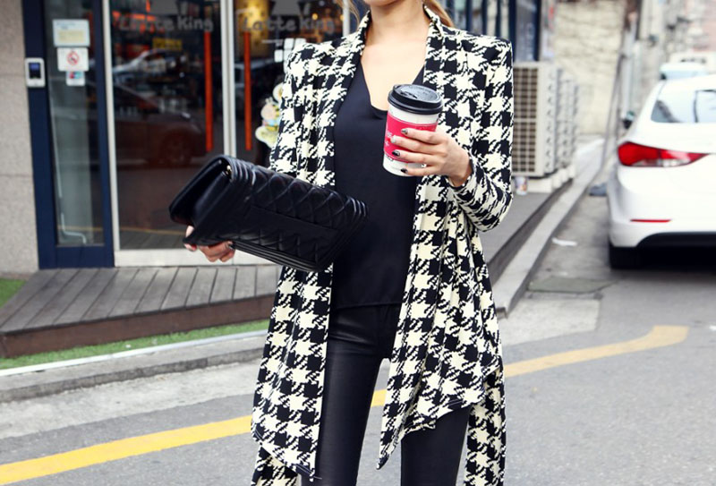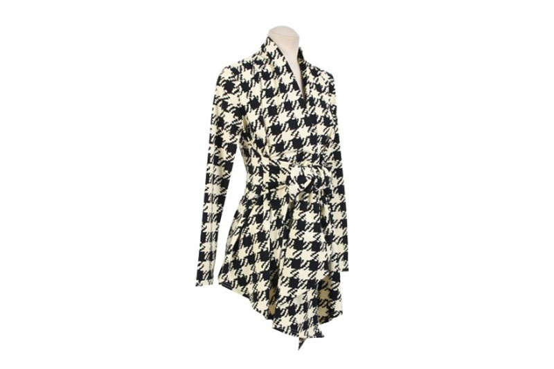 Яркая и стильная модель: кардиган с воротником и рисунком «гусиная лапка».