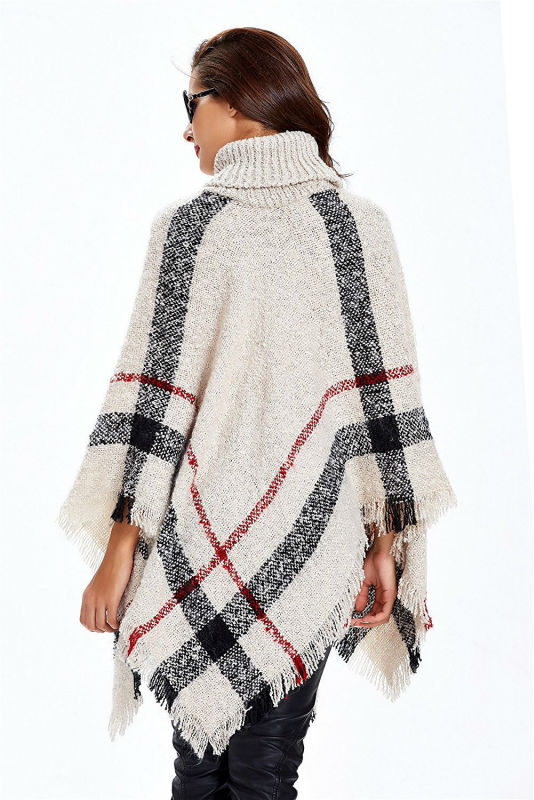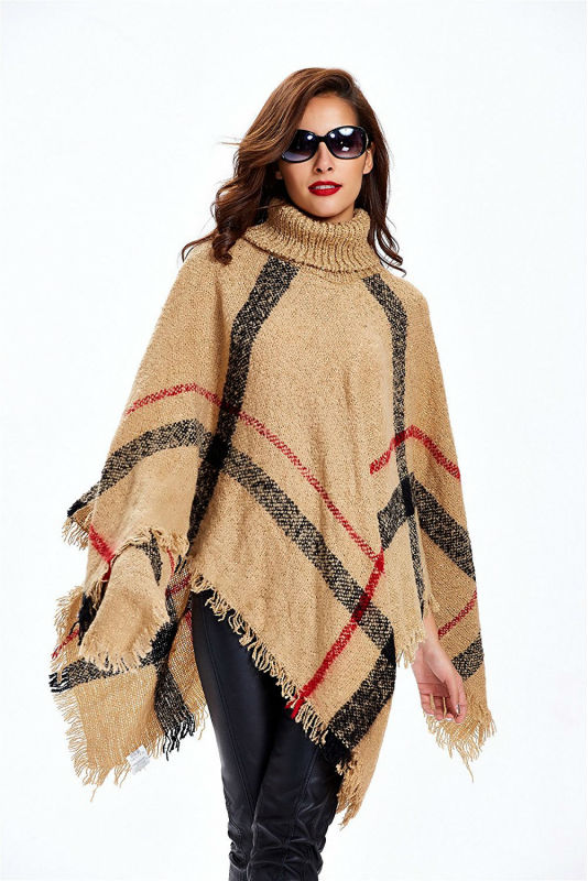 Тёплое пончо в крупную клетку с высоким горлом - это желанный предмет в гардеробе каждой девушки! Свободный и вместе с тем очень комфортный силуэт не оставит равнодушных и придется по вкусу даже самым взыскательным дамам. Может стать прекрасным подарком для мамы или подруги.